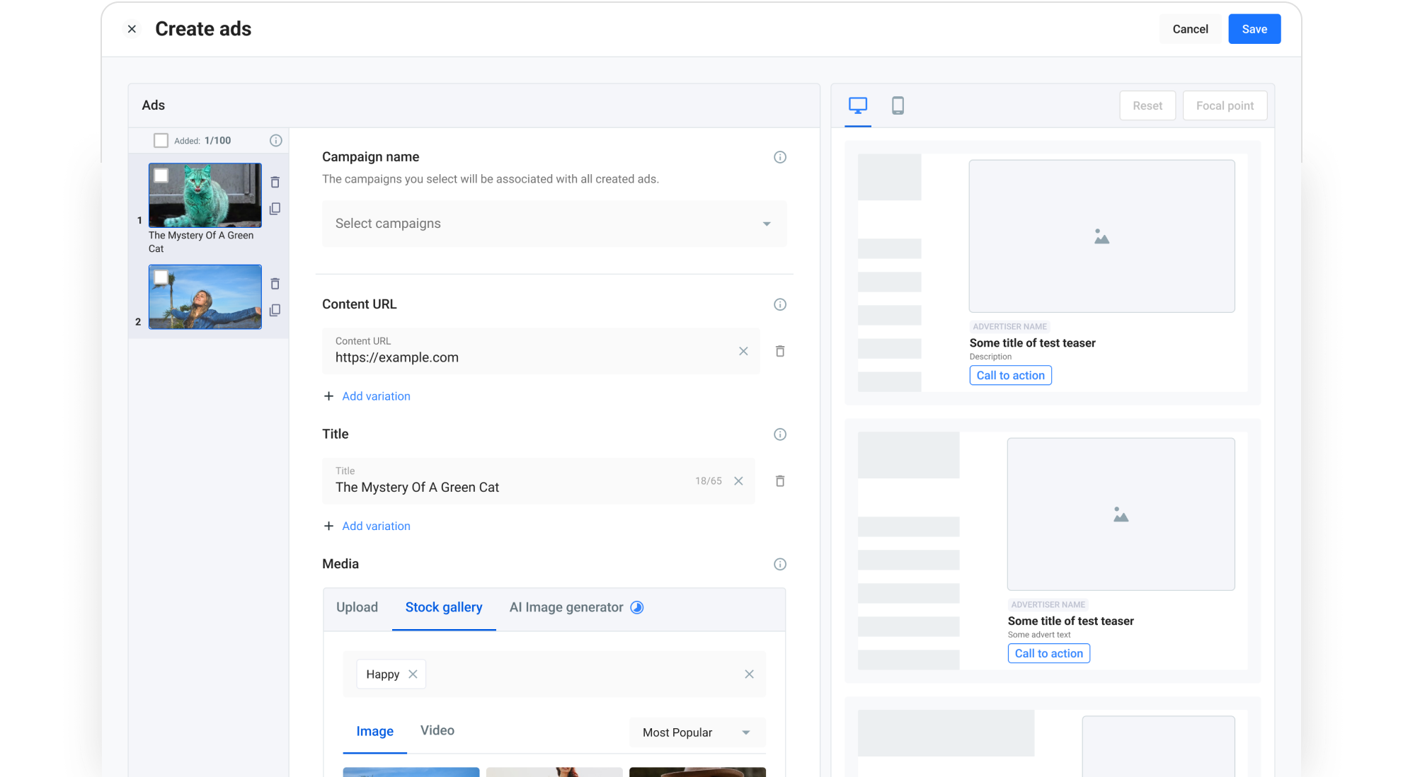 With native ads, you pay per click. However, you always have the option to run a CPM campaign and try other formats: rich media, video ads and more.